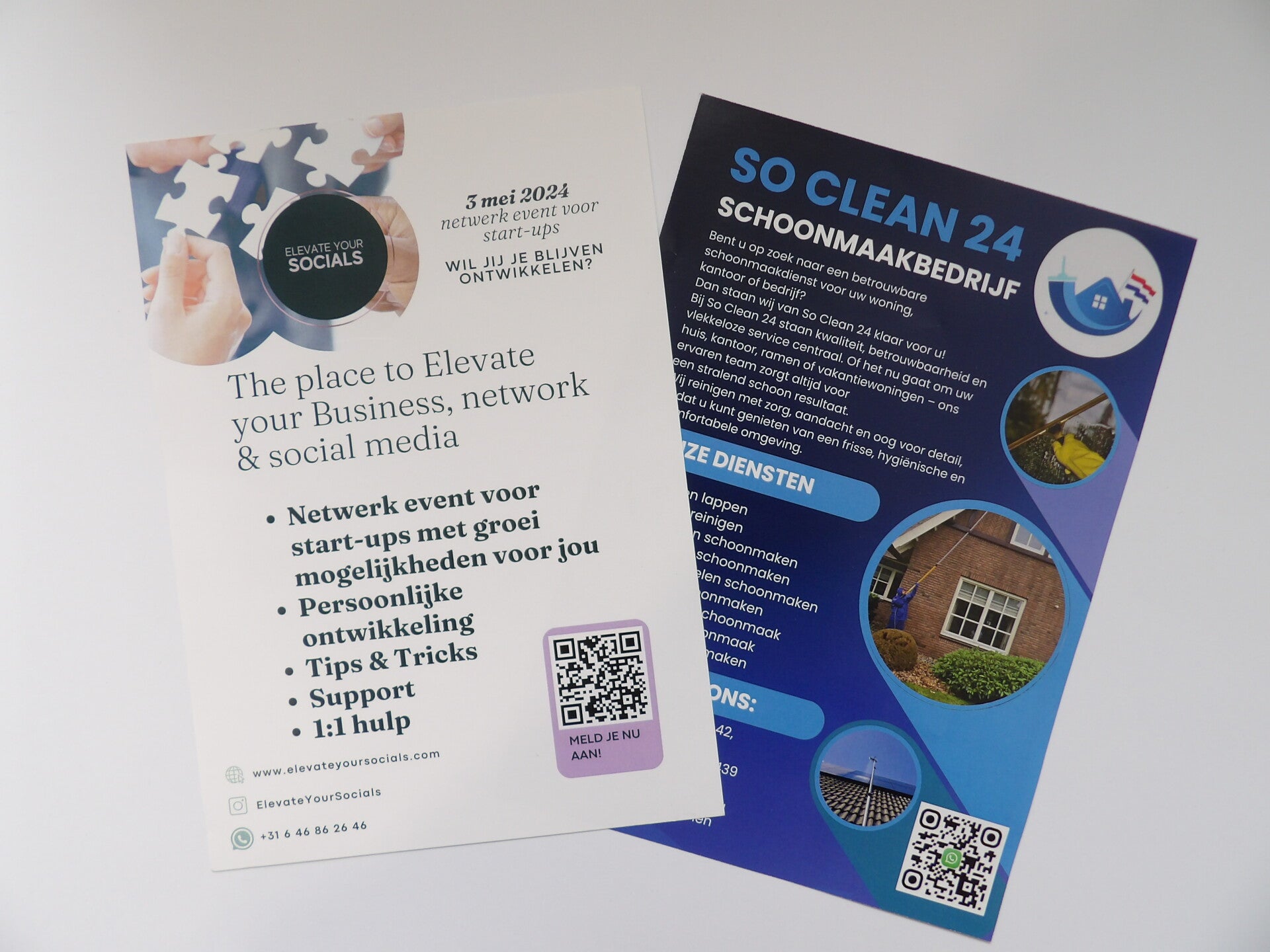 Flyers en folders zijn dé manier om jouw boodschap snel en effectief op te laten vallen. Met een flyer bereik je een groot publiek, terwijl folders ideaal zijn om meer informatie overzichtelijk te presenteren.